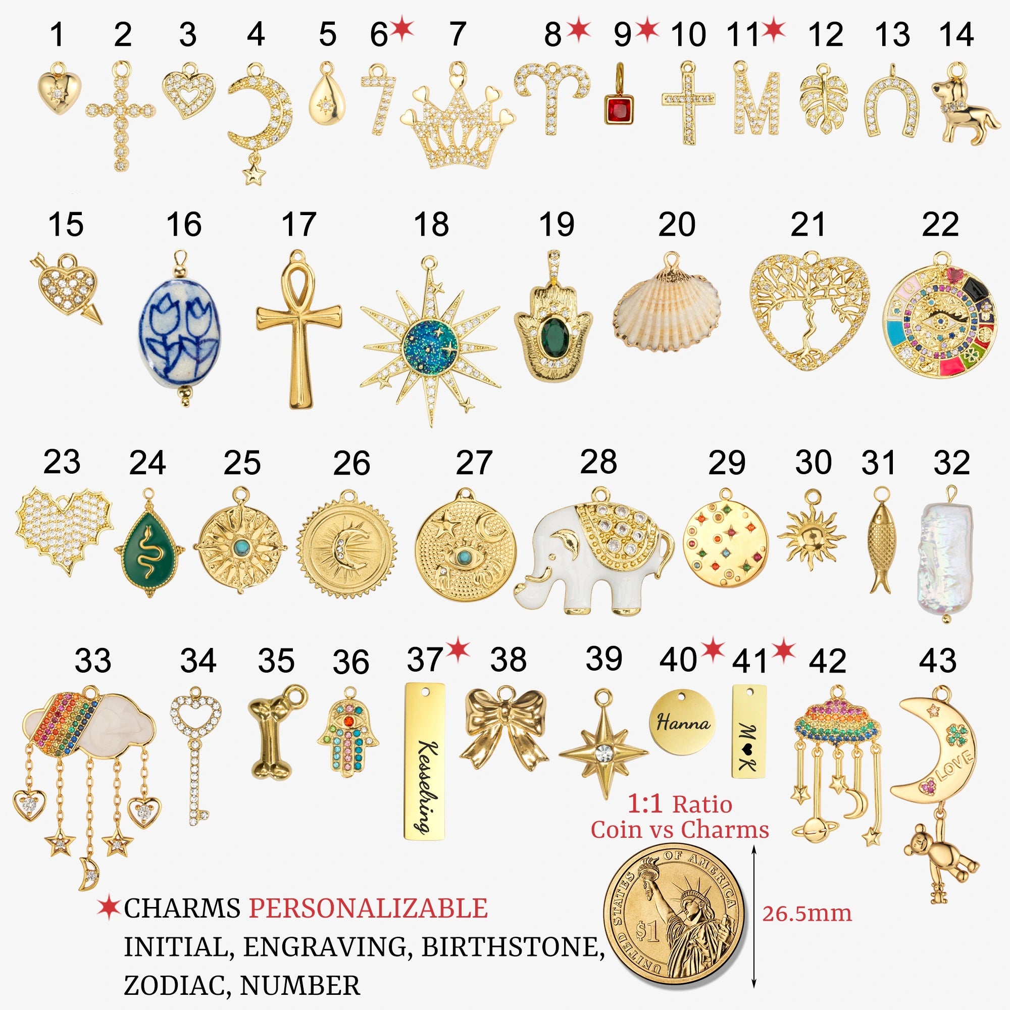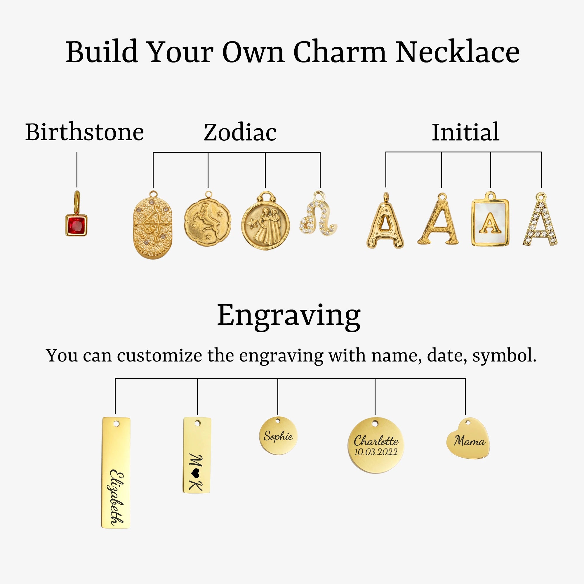 "Say 'see-ya' to nickel irritation & green neck. 96+ charms to mix – Birthstones, Zodiac, Names, Dates, Symbol or Initials. Endless combos craft your story necklace. Get ready for 'That’s so you!' compliments daily."