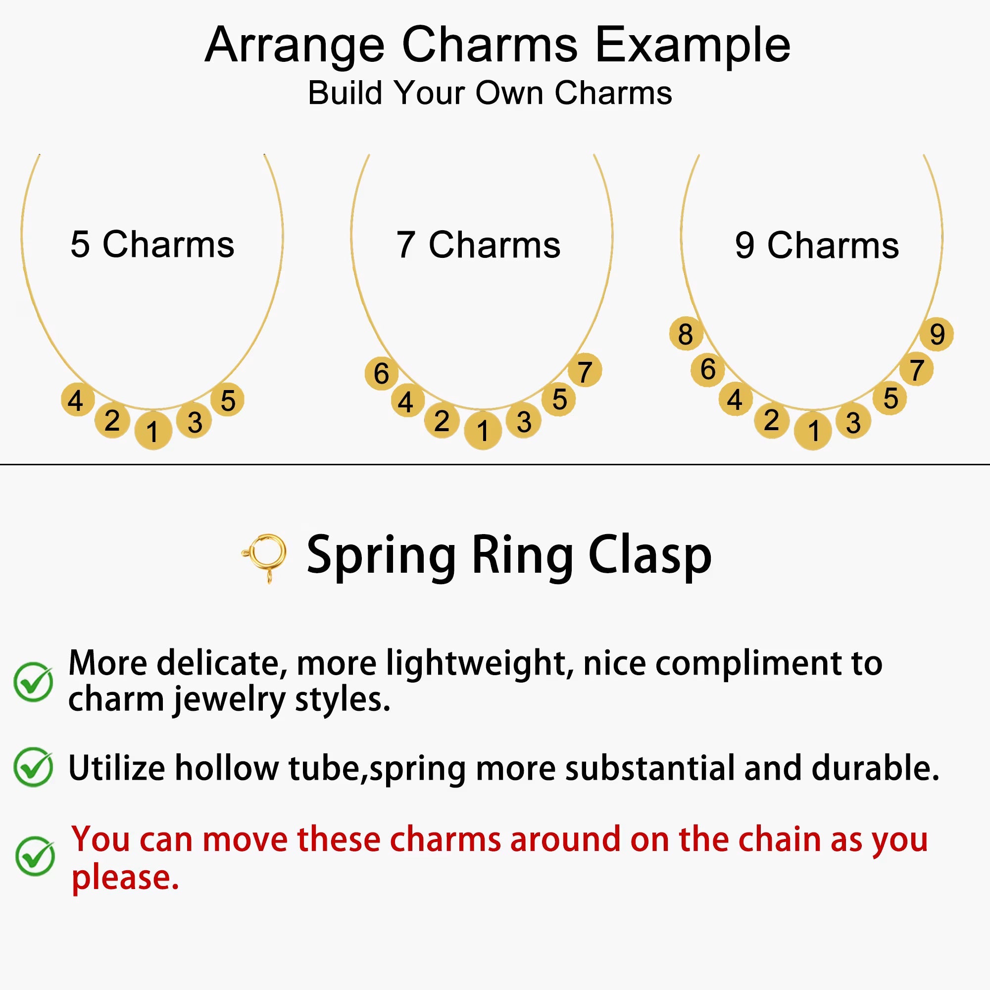 - 💕[Personalized Charm Necklace] You can add remove or move these charms around on the chain as you please. 4.4mm paperclip link chain length: 16"/17"/18"/19"/20"/21"/22" with a 2" extender.