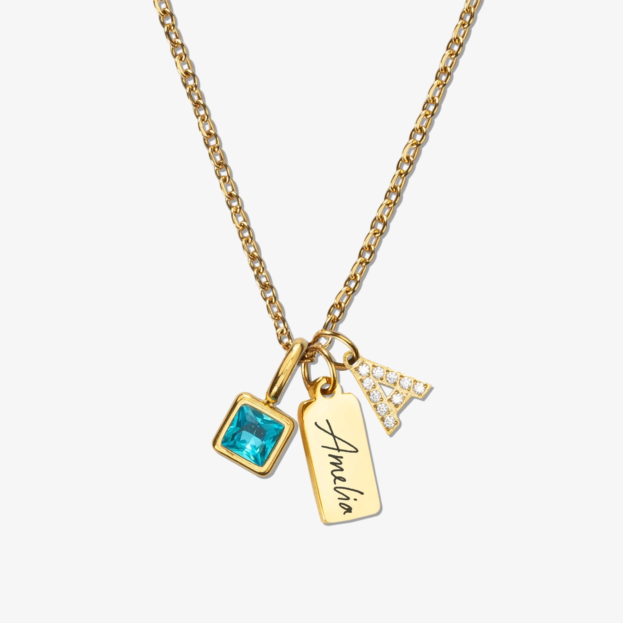Dainty Cable Chain Personalized Name Tiny Initial Birthstone Necklace